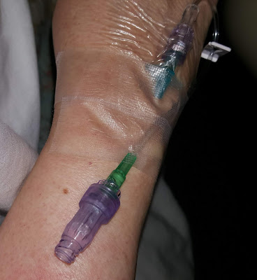 Wow, it has been a crazy two weeks here and so little to show for it. As you know, I went to a quilting retreat with my daughter and we had a great time! However, there were a few germs somewhere in the air and by the time I was ready to leave, I had a bit of a sore throat. By Monday it was a cough. Hailey felt poorly by Sunday night and then my hubby was feeling bad by Tuesday. Before I continue, let me give you a bit of a background history of myself. I have chronic asthma. Now, keep in mind that I do everything I can and have managed my asthma extremely well. As a matter of fact, it has been so well maintained that I seldom use a rescue inhaler and it had been several years since I needed breathing treatments with a nebulizer. Even still, the smallest of ailments for someone else can be dire for those with other issues. By Thursday, I was suffering with coughing and breathing. My inhaler wasn't working and my meds for breathing treatments had expired. My heart was working way over time trying to keep my lungs working. So, to the ER for me. Tests, tests, tests, diagnosis of bronchitis, tons of meds, back home to heal. Well, that wasn't good enough sadly. Lungs were getting worse, heart was working even harder, and while I have had the odd occasion of feeling so sick I wanted to die, this was the first time I thought it was possible. No amount of inhalers or breathing treatments or anything else was working, I felt like I was suffocating. I'm not going to lie, I was truly terrified. Back to the ER on Monday night. More tests, more meds, more problems, etc. In the end, viral, bacterial and fungal infections were to rear their ugly heads. Only able to sleep two hours a day due to constant monitoring and medication schedules (which seemed to be changed up often). We had IV problems as well, did I mention I'm afraid of needles already? Oh well, the staff was nice. I am finally back home. However, my room has been stripped of nearly everything that can move. I am not allowed to do anything for at least three weeks, including climbing the stairs to go to my studio. The meds are still round the clock and of course they are all on different schedules. I have already lost two weeks of quilt related work time and now I have at least three more weeks of work to lose. My daughter did better than me and only lost half of her work hours. My husband, on the other hand, lost a full week of work. Due to so many meds, our insurance didn't cover the majority of them. Now, here me when I say I'm not complaining at all. I'm stating facts as they are right now. I'm grateful to be home again. I'm grateful that I'm marginally better. I'm grateful that I can watch quilty YouTube videos. One could say that I can at least do some hand work while in the bed. But have you ever tried to accurately use a small needle when you have the shakes from round the clock breathing treatments? I did sew on two beads last night for my Ostrich Quilt and I'm not going to tell you how many times or how painfully I poked myself in the process. I needed to do it though. I needed to feel in control of something, anything, at all. I have only two more that need to be on and I will try to do them today. I know it will make me happy to have that round finished up and photographed. (I did it, see pics below! Do you know what the beads represent?) The next round I need to audition some fabric for, so that I can definitely do. And since I'm only using stuff from my stash, I don't have to feel bad about not being able to shop. The other projects I want to work on require using a rotary blade...I think that is probably a no-no right now. LOL. I'm praying that the treatments grow fewer and further between so that I can at least get 5 minutes done a day instead of my 15 minutes. So, as I said, I'm not complaining. I have no ill will toward anyone. However, I do wish to make a brief public service announcement that if you are sick at all, please stay away from others! You don't know what hardship you might be forcing on others. IF, and I mean IF, someone went to the retreat knowing they were sick, but didn't think it was that big of a deal and didn't want to lose out on the money they spent... can I just say the money we have lost and are continuing to lose is a much greater amount. Overall, I'm saying just be mindful of others, please. Now, I've posted some pics of my last week below. Some might be a bit graphic, so feel free to not look at them. And my prayers for all of you are that you are well and get lots of quilty stuff done this week.